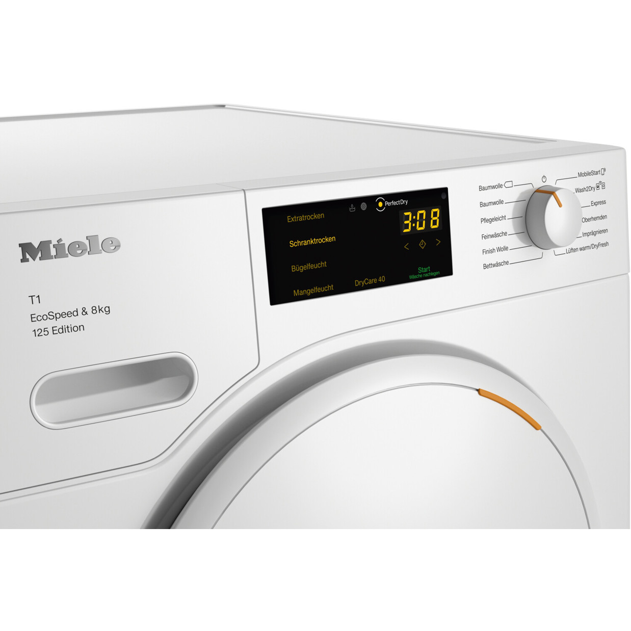 Er verfügt über Funktionen wie EcoSpeed, FragranceDos, EcoDry, PerfectDry und Miele@home für eine schonende und effiziente Trocknung.