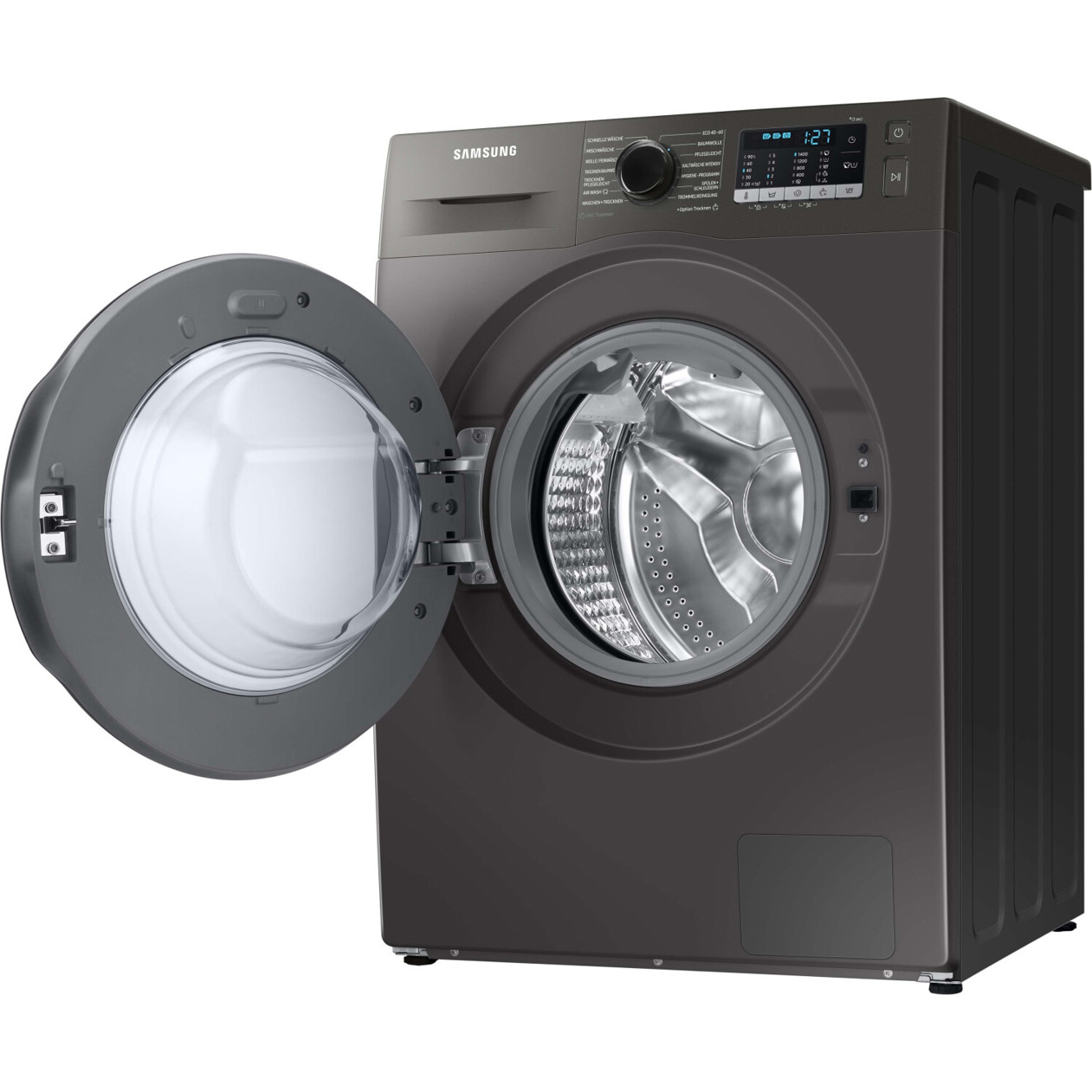 Der Samsung WD8ETA049BX/EG ist ein freistehender Waschtrockner in stilvollem Anthrazit, der sich nahtlos in moderne Haushalte einfügt. Mit einer Ladekapazität von 8 kg beim Waschen und 5 kg beim Trocknen ist er ideal für mittlere Haushalte mit 3-4 Personen geeignet. Die maximale Schleuderdrehzahl von 1.400 U/min sorgt für effiziente Ergebnisse. Sein Bullauge ist in elegantem Schwarz gehalten, während der Türanschlag links positioniert ist. Die Maße des Geräts betragen 85 cm in der Höhe, 60 cm in der Breite und 60 cm in der Tiefe.